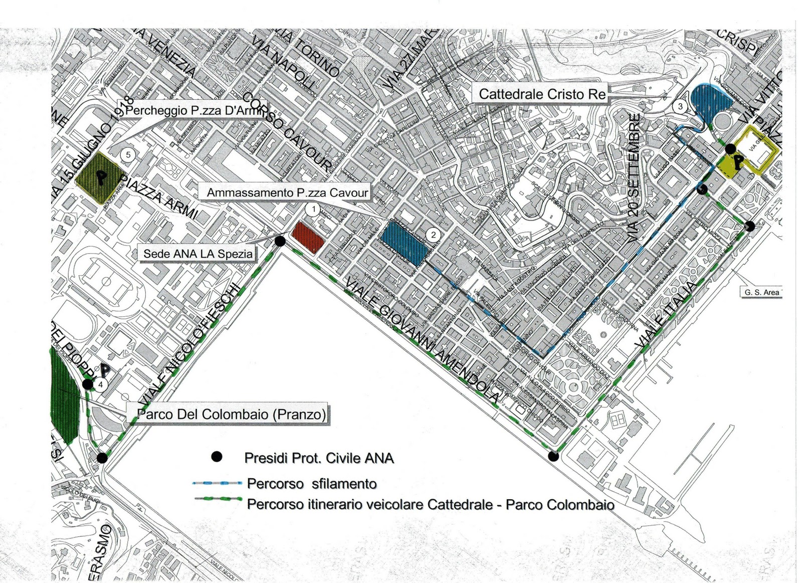 Ecco la mappa dei percorsi sui quali si svolgerà la manifestazione del 30 gennaio 2011 alla Spezia, nell'ambito della quale sarà commemorata la battaglia di Nikolajewka.
