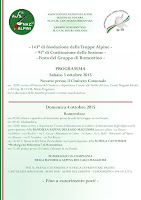 La sezione ANA di Novara organizza il proprio raduno annuale in occasione della festa del Gruppo di Romentino. La festa alpina si svolgerà il 4 ottobre e sarà l'occasione per celebrare anche il 143° anniversario di costituzione delle Truppe Alpine.